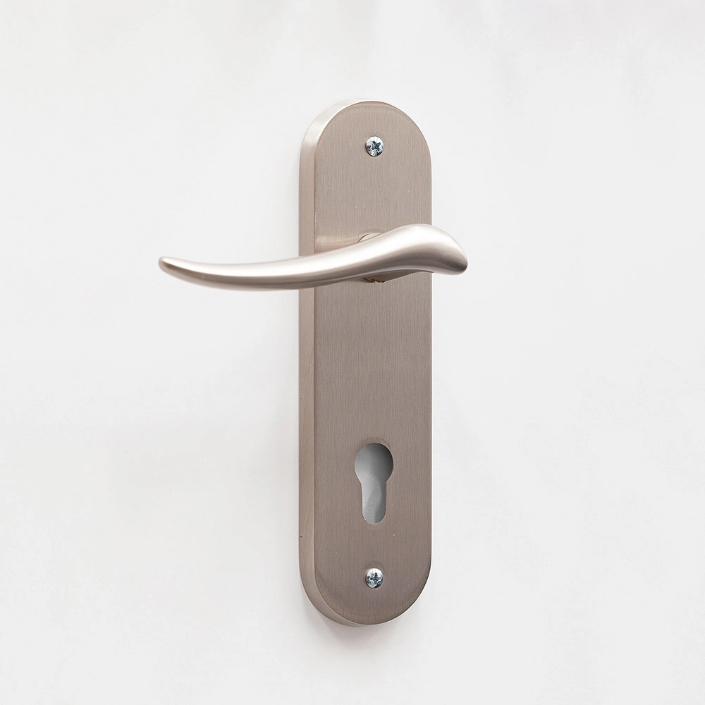 La manilla con placa ancha de THT es una opción elegante y robusta para puertas de seguridad o diseño clásico. Disponible en inox o latón, ofrece un estilo refinado y funcional, ideal para proyectos que requieran estética tradicional con materiales duraderos.