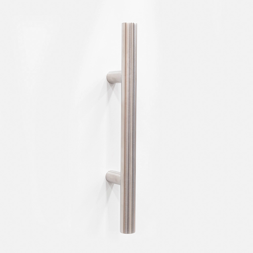 Manillón de diseño moderno London, disponible en varios acabados y tamaños. Ideal para puertas de estilo contemporáneo, fabricado en acero resistente con acabado elegante.