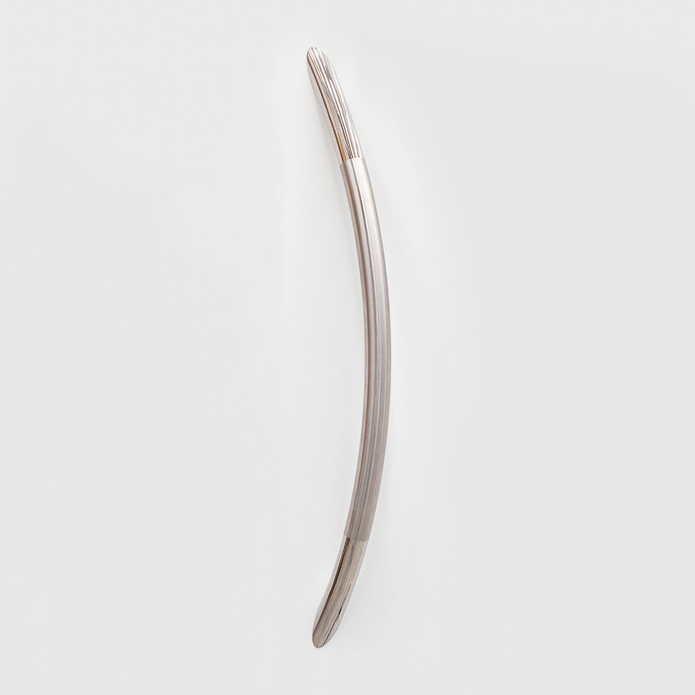 Manillón de diseño curvo y ergonómico, acabado inoxidable que ofrece funcionalidad y estética moderna.