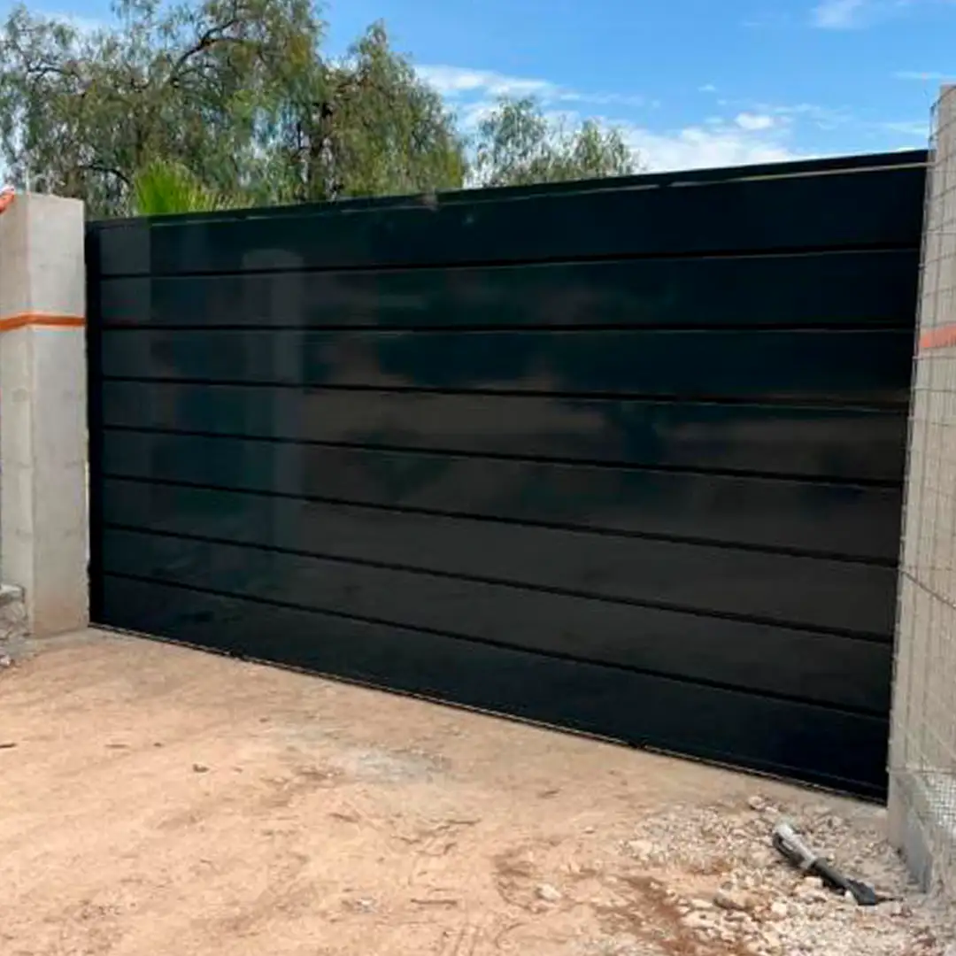 Maximiza el espacio y realza la estética de tu propiedad con nuestra puerta corredera de vanguardia, caracterizada por sus elegantes láminas horizontales en un sofisticado color gris azulado. Esta solución es ideal para entradas de viviendas, comunidades o cualquier acceso que busque una combinación de diseño moderno, privacidad efectiva y una funcionalidad superior. Su sistema corredero es perfecto para optimizar el espacio, mientras que su robusta construcción garantiza durabilidad y la resistencia.